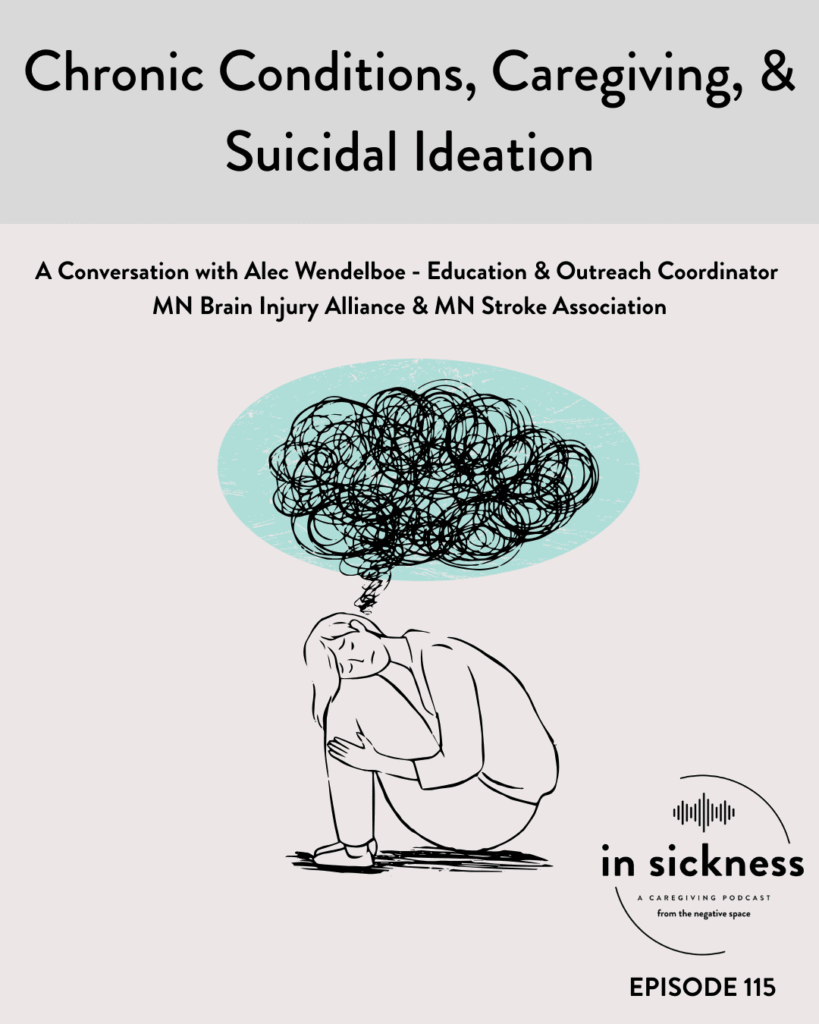 In this episode, Allison and Justin speak with Alec Wendelboe, Education and Outreach Coordinator for the MN Brain Injury Alliance and MN Stroke Association about how people living with chronic conditions and those who are caregiving have a higher likelihood of experiencing suicidal ideation. They discuss why this is, what that may look and feel like, and where to get support.